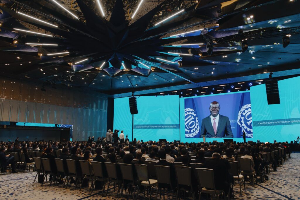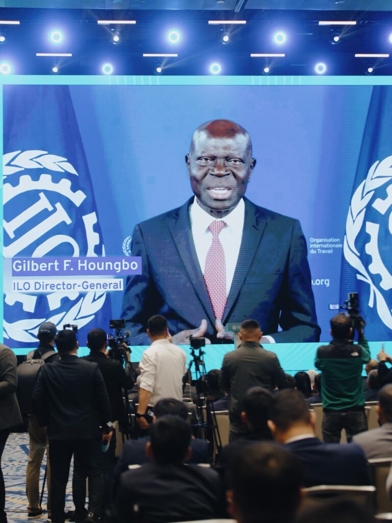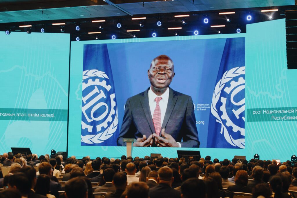 На Республиканском форуме ко Дню труда с видеообращением к участникам выступил Генеральный директор Международной организации труда Жильбер Унгбо.
